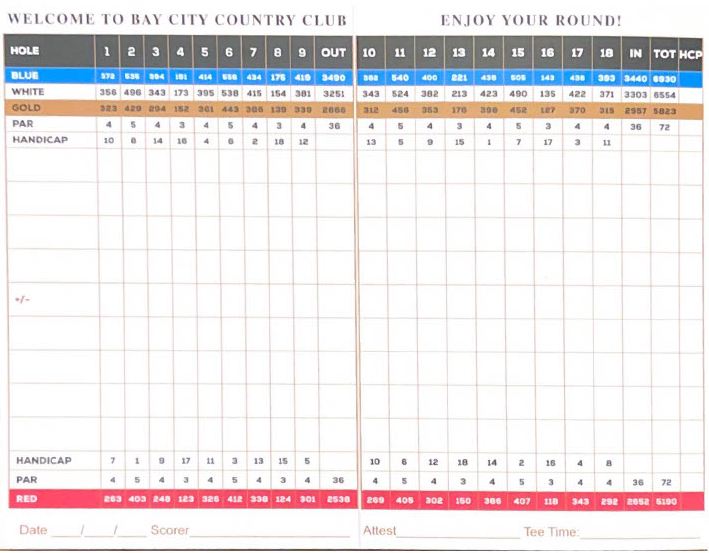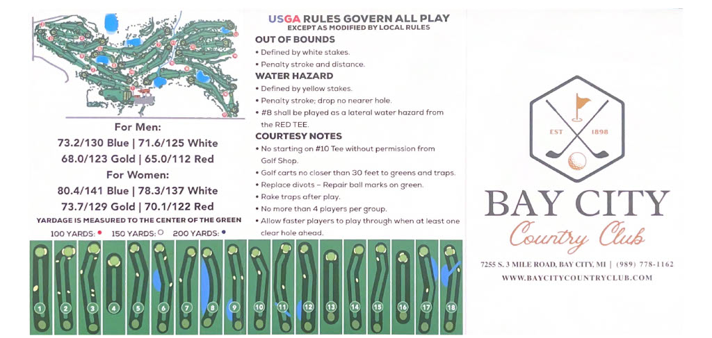 Our back nine holes #10 through #18 offer a scenic side to the course with water hazards and various difficult to maneuver tee shots that bring all facets of the game into play. Our blue tees on the back nine total 3440 yards, white tees play to 3303 yards, gold tees are 2957 and our red (women’s tees) play out to 2652.